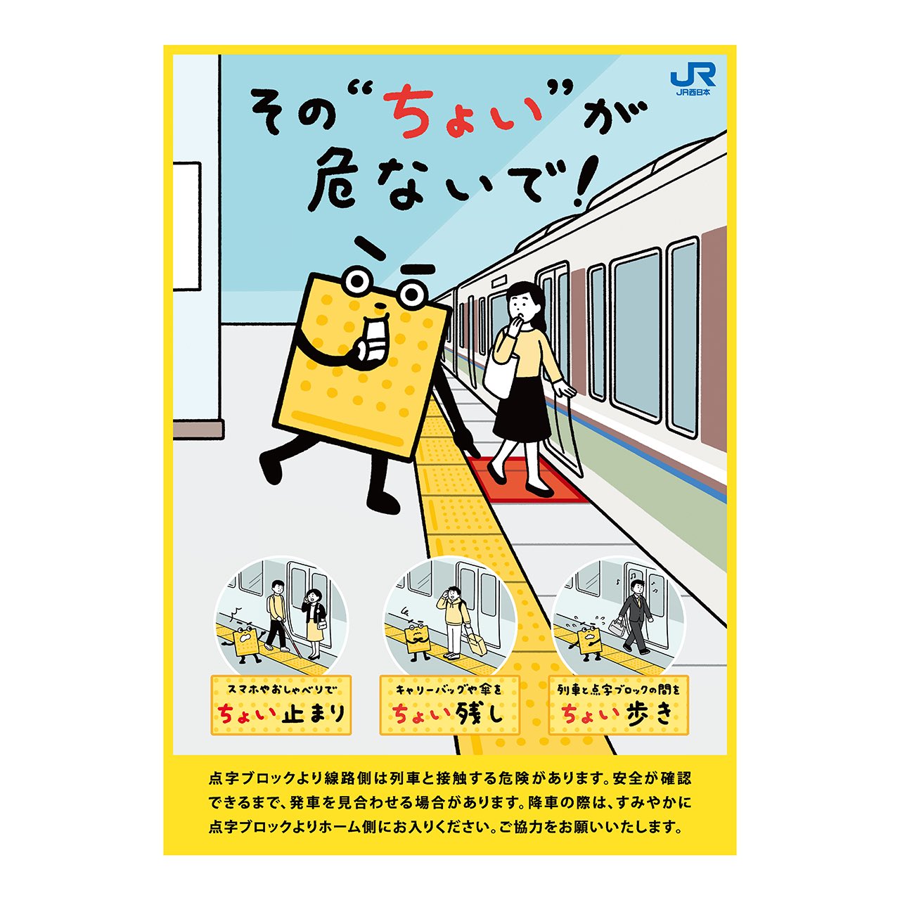 くにとも No Twitter Jr西日本 点字ブロック マナーポスター のイラストを担当しました 文字も手書きで書いてます T Co Xfnbwnfcxr Twitter